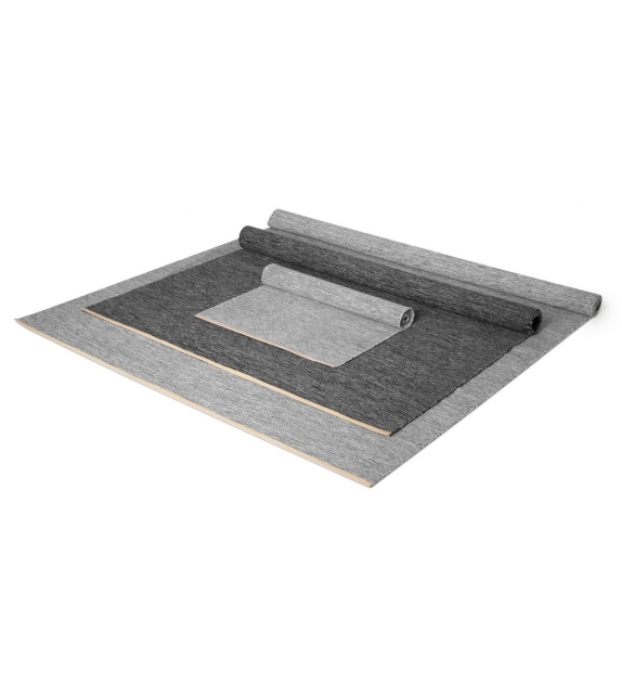 Björk di Design House Stockholm is a rug. “The birch, a tree that can be found all over Sweden, is my inspiration for the Björk collection. The expression in the woven structure comes from the black and white trunk of the birch and the leather represents the inside of the bark. The rug forms a beautiful flat textile surface in the home, as natural as stone or wood.