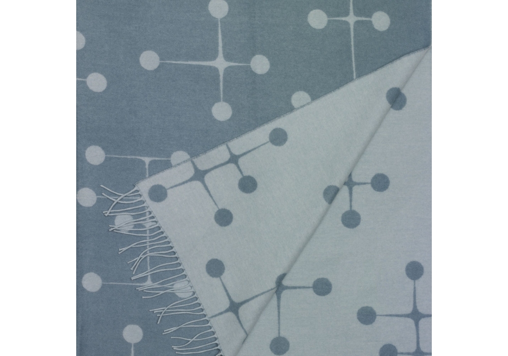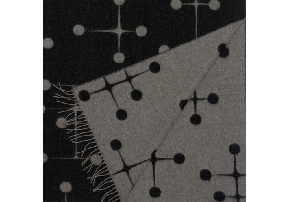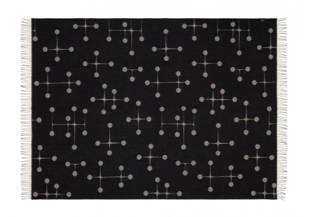 Vitra, Eames Wool Blanket: Wie viele andere grosse Architekten und Designer des 20. Jahrhunderts haben sich auch Charles und Ray Eames mit der Gestaltung von Textilien beschäftigt und so ihre Vorstellungen von Farben, Formen und Material umgesetzt. Das „Dot Pattern“ entstand 1947 in Zusammenhang mit einer Ausstellung im Museum of Modern Art New York. Es variiert ein grafisches Motiv aus Kreuzen und Kreisen zu einer grossflächigen Komposition und weist Bezüge zu Ray Eames‘ abstrakten Gemälden aus den 1930er-Jahren auf.