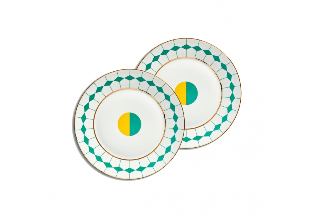 Ponta hergestellt und signiert von Reflections Copenhagen, ist ein Dessertteller aus Porzellan mit verschiedenen und extrovertierten Dekorationen mit grafischer Inspiration aus dem Jugendstil.