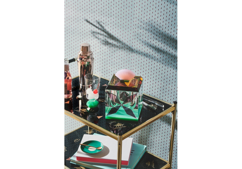 Wilson produziert und signiert von Reflections Copenhagen, ist ein Eiskübel, der vollständig aus handgefertigtem mintfarbenem, transparentem und errötendem Kristall besteht.