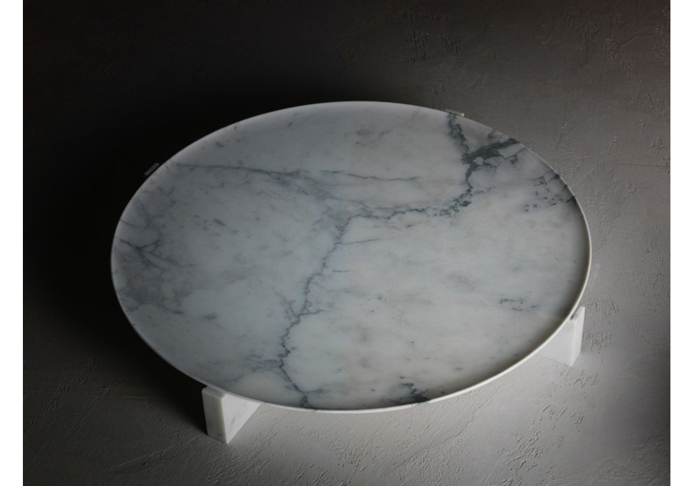 Imperial L von Christophe Pillet für Kreoo entworfen ist ein runder Tafelaufsatz ganz aus Marmor mit Kreuzfuß. Imperial L ist in verschiedenen Ausführungen erhältlich.
