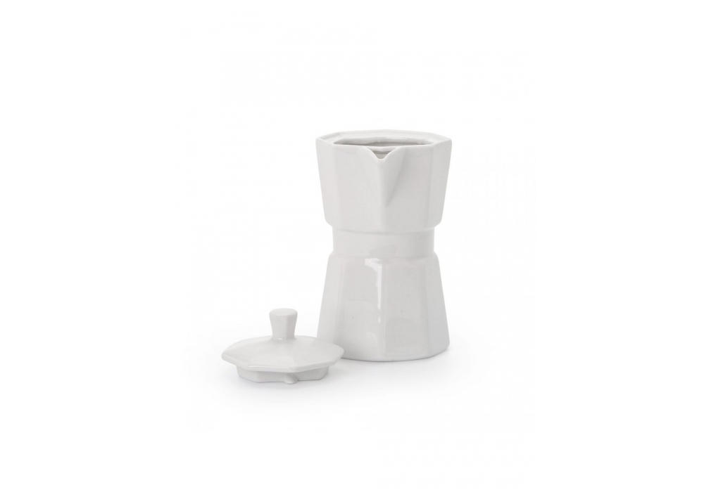 Die von Selab & Alessandro Zambelli entworfene Kaffeemaschine ist eine Dekoration in Form einer Kaffeemaschine mit abnehmbarem Deckel, die vollständig aus weißem Porzellan besteht.