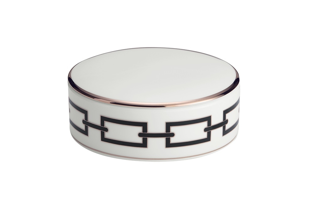 Scatola Talco Catene Nero von Ginori 1735 entworfen, ist eine dekorierte runde Schachtel mit Deckel.