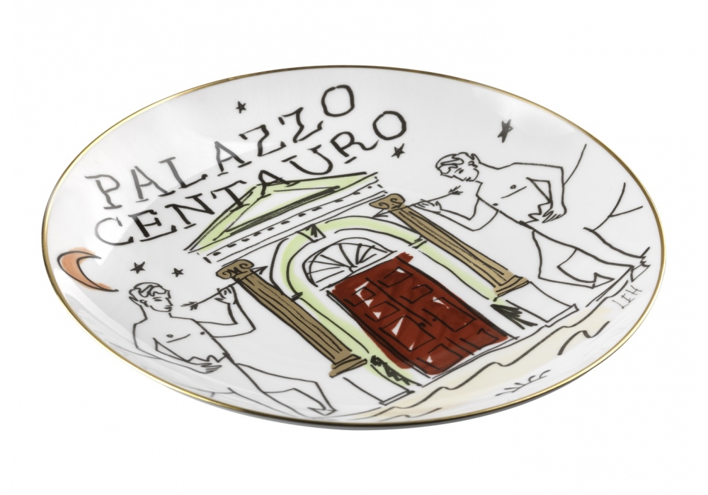 Palazzo Centauro von Luke Edward Hall für Ginori 1735 entworfen, ist ein Designteller aus reinem Porzellan, der als Tablett, Tafelaufsatz und als echtes Möbelstück verwendet werden kann.
