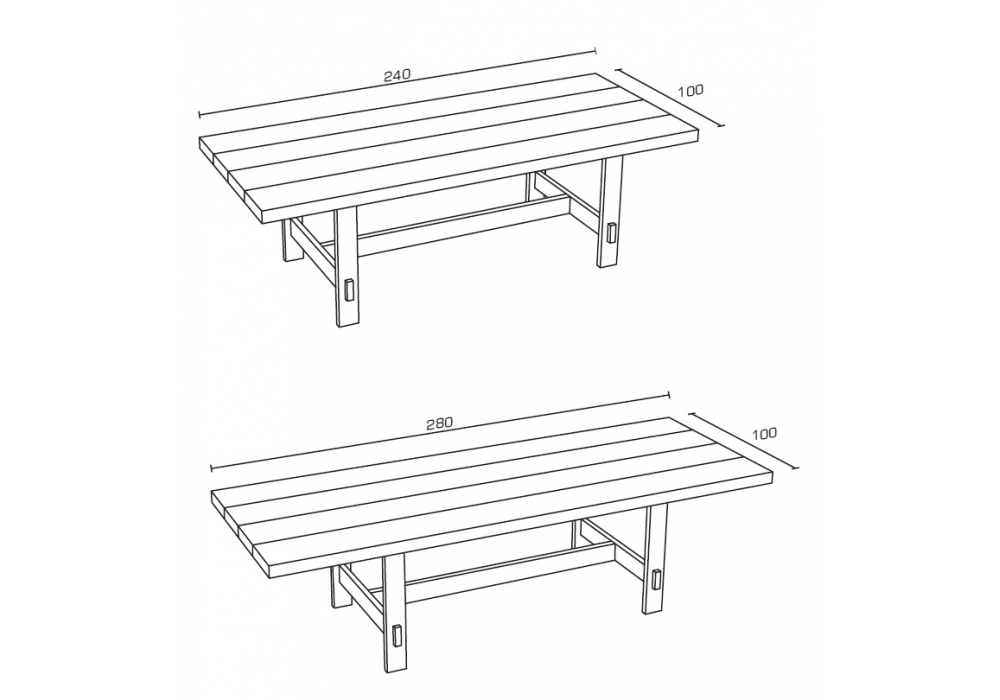 | Abmessungen | 240 x 100 x H 74 cm; 280 x100 x H 74 cm. |