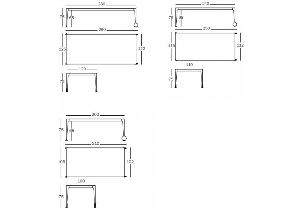 | Abmessungen | 200 x 100 x H 75 cm; 240 x 110 x H 75 cm; 280 x 120 x H 75 cm. |