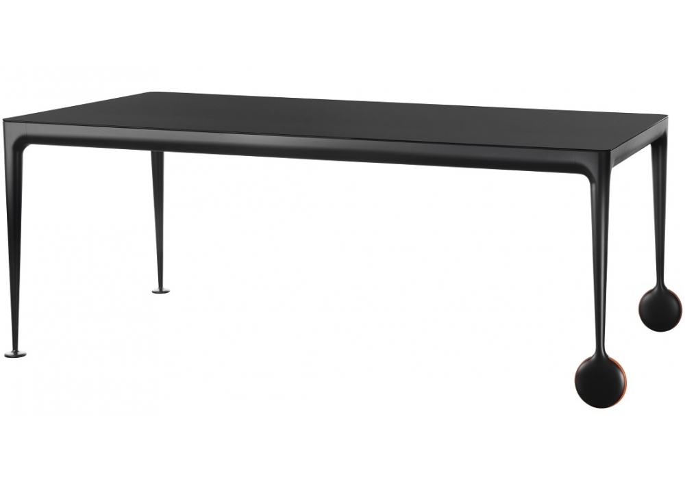 Big Will von Philippe Starck für Magis entworfen, ist ein Tisch mit Beinen aus poliertem oder lackiertem Aluminiumdruckguss. Querstreben aus lackiertem Aluminiumprofil. Glänzende oder opake säuregeätzte gehärtete Glasplatten. Gummiräder.
