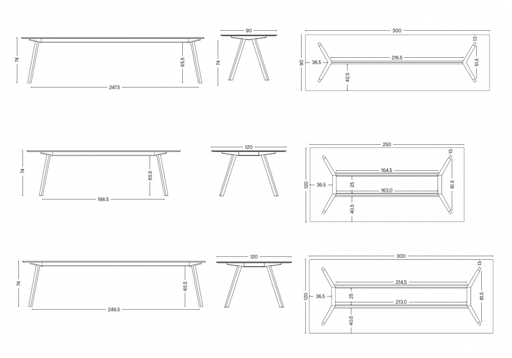 | Abmessungen | - 200 x 80 x H 105 cm; - 200 x 90 x H 74 cm; - 250 x 90 x H 74 cm; - 300 x 90 x H 74 cm; - 250 x 120 x H 74 cm; - 300 x 120 x H 74 cm. |