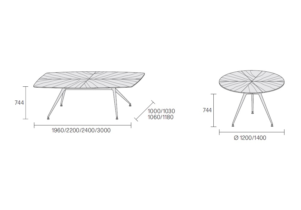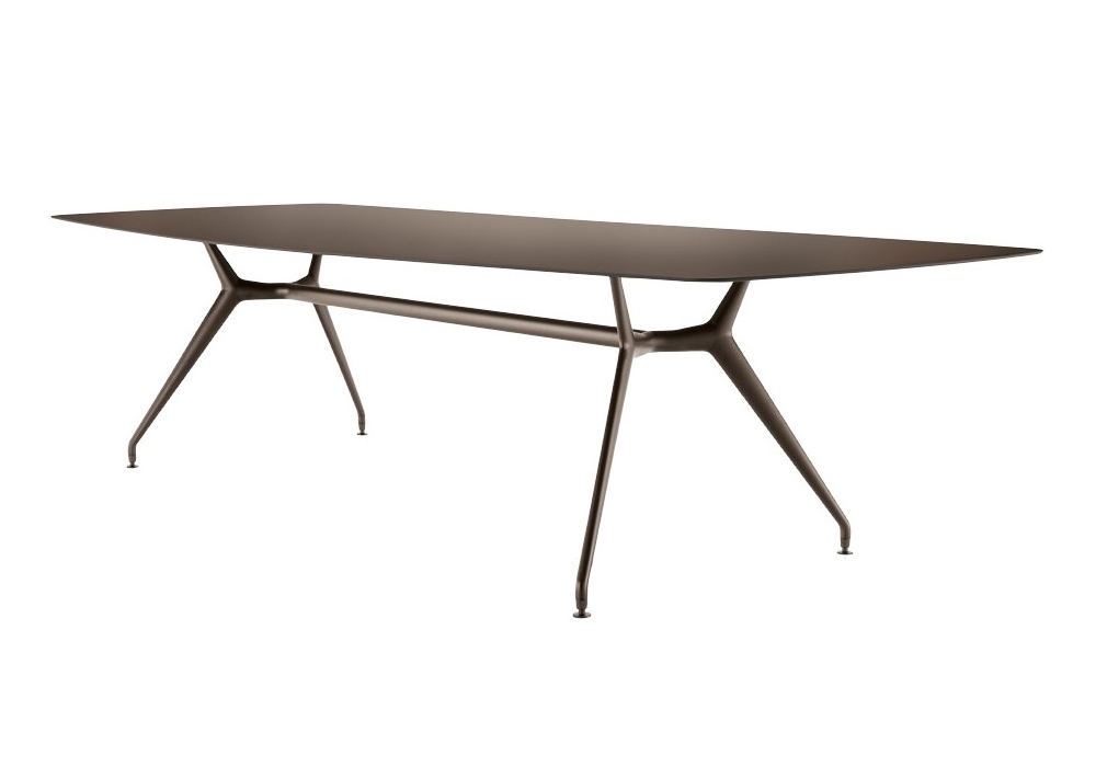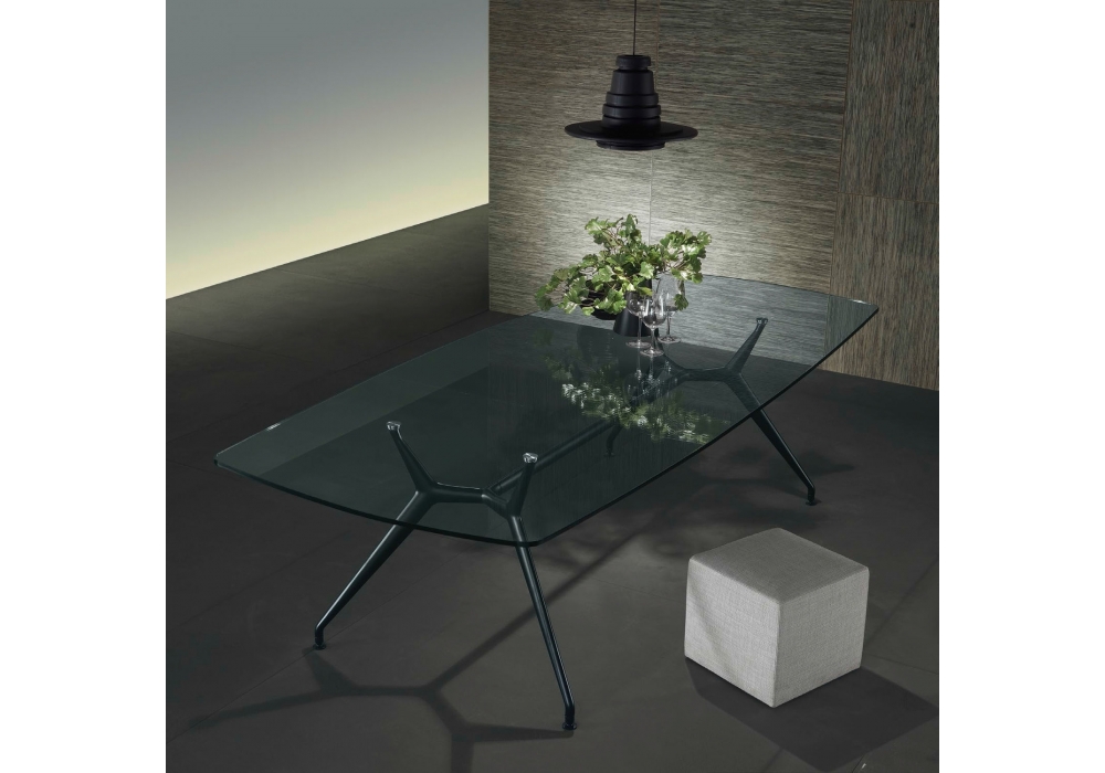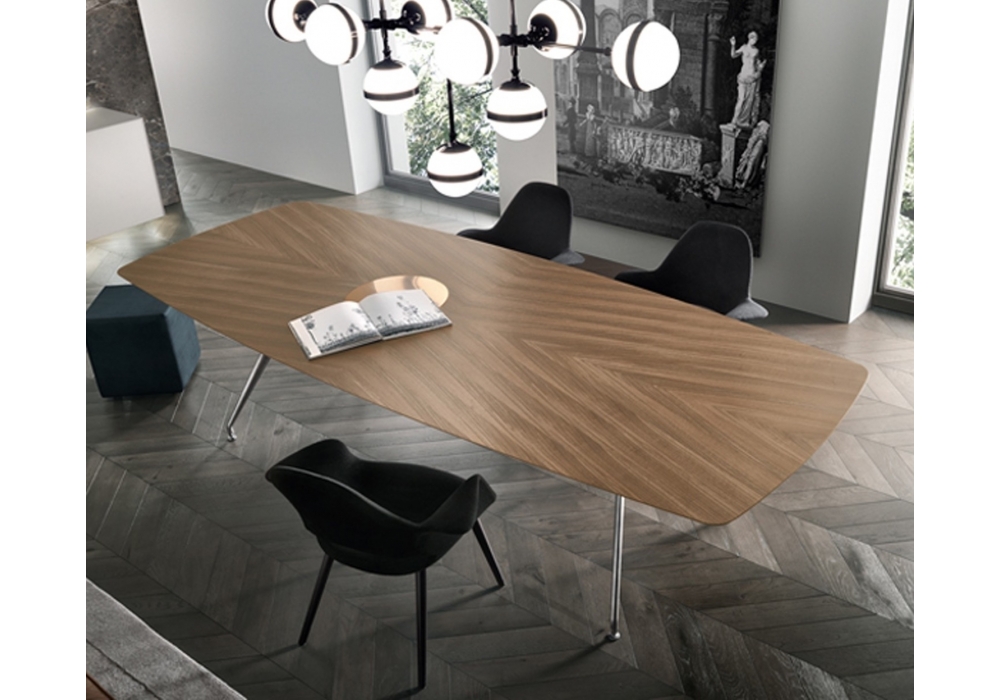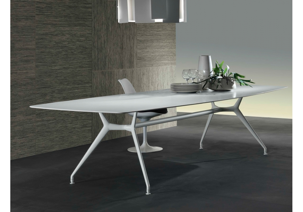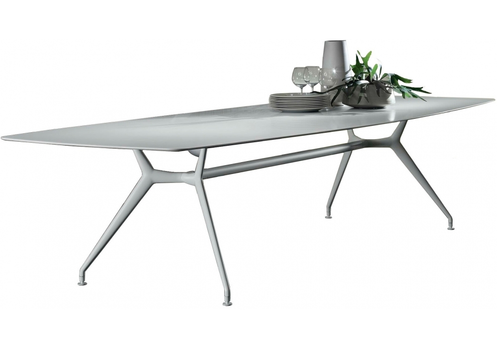 Manta von Giuseppe Bavuso für Rimadesio entworfen ist ein neues Konzept der modularen Tischen. Eine einzigartige Struktur aus Aluminium, mit drei, vier oder sechs Beinen, kombiniert mit rund und Bootsformigen Platte aus Thermobehandeltem Eiche, lackiertem oder transparentem Glas und Acryl. Ein Vorschlag, für zahlreiche Lösungen, von Wohnbereich bis zum Bueros.