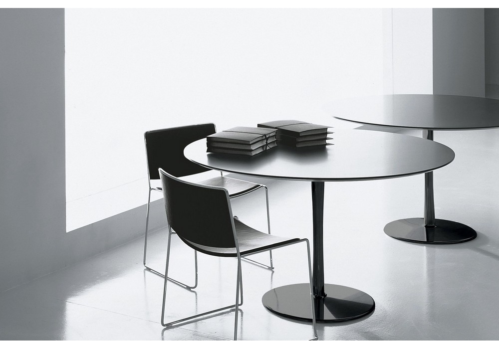 Join is a table designed by Decoma Design for Porro. Join, designed by Decoma Design, is a table with a circular, oval, square with rounded corners or irregular top, featured by a bearing, ‘drop’ shaped leg with a suggestive geometric volume. It is available in three different diameters and other 3 dimensions. Join will suit either public or private spaces. The structure is in high resistance white or black matt lacquered.