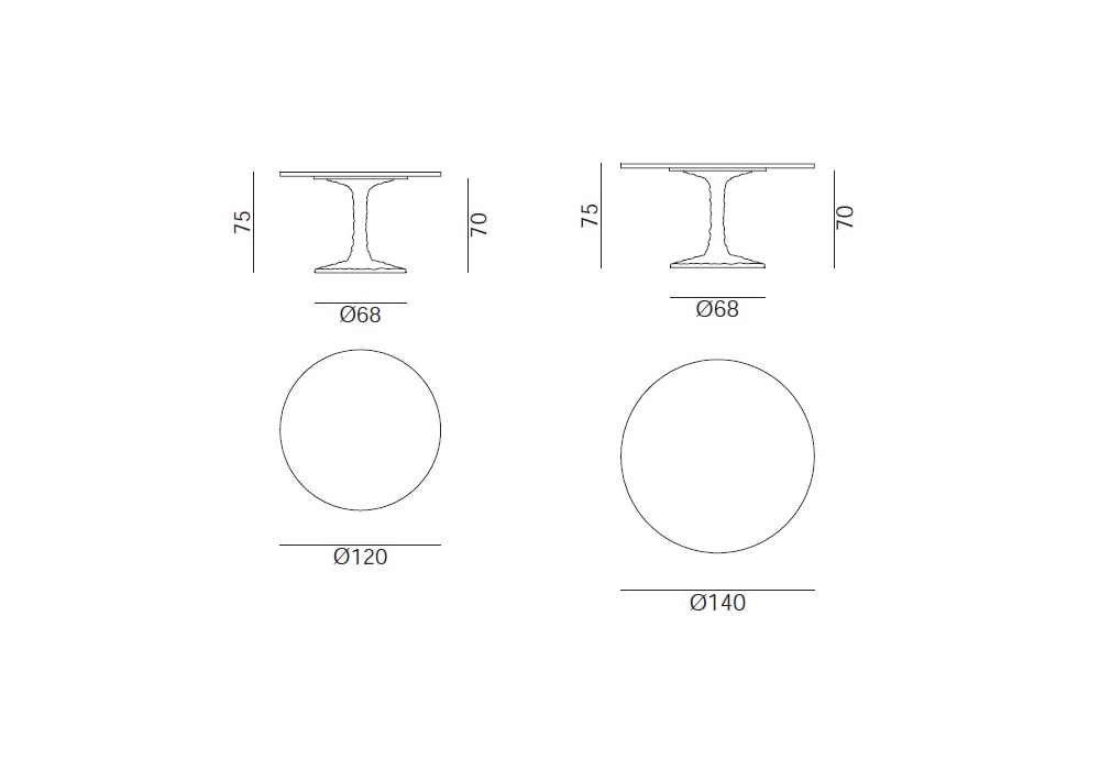 | Abmessungen | Ø 120 x H 75 cm; Ø 140 x H 75 cm |