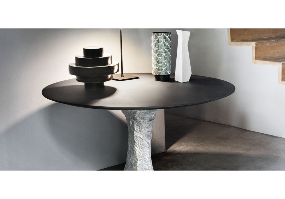 Next, von Paola Navone für Gervasoni entworfen, ist ein runder Tisch mit Fußkreuz aus gegossenem, poliertem Aluminium und Tischplatte aus weißem Carrara-Marmor oder Canaletto-Nussbaumholz verfügbar in verschiedenen Ausführungen.