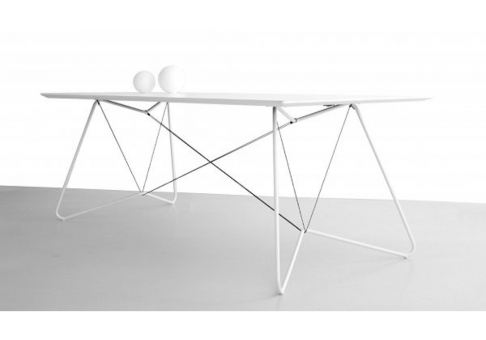Oas designed by OK Design is an elegant table with a combination of tubes and strings supporting a linoleum black or laminated white top. It’s excellent as a dining table to enhance your living room's style. It is also available in 2 different sizes: 170 cm x 90 cm or in a bigger version 200 cm x 90 cm.