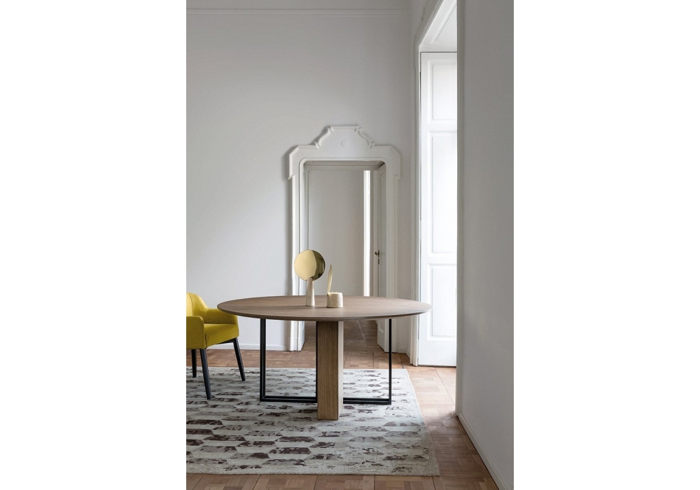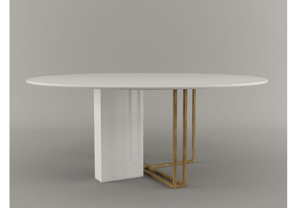 Plinto XW designed by Andrea Parisio for Meridiani is a dining table that has a base composed of a metal frame and a one-piece available in matt or glossy lacquer, marble or wood. Table top is realized in different sizes and shapes and it made of wood, marble or lacquered in matt or glossy finish.