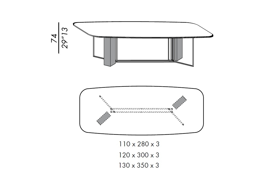 Plinto Y2W designed by Andrea Parisio for Meridiani is a dining table that has a base composed of a metal frame and a one-piece available in matt or glossy lacquer, marble or wood. Table top is realized in different sizes and shapes and it made of wood, marble or lacquered in matt or glossy finish.