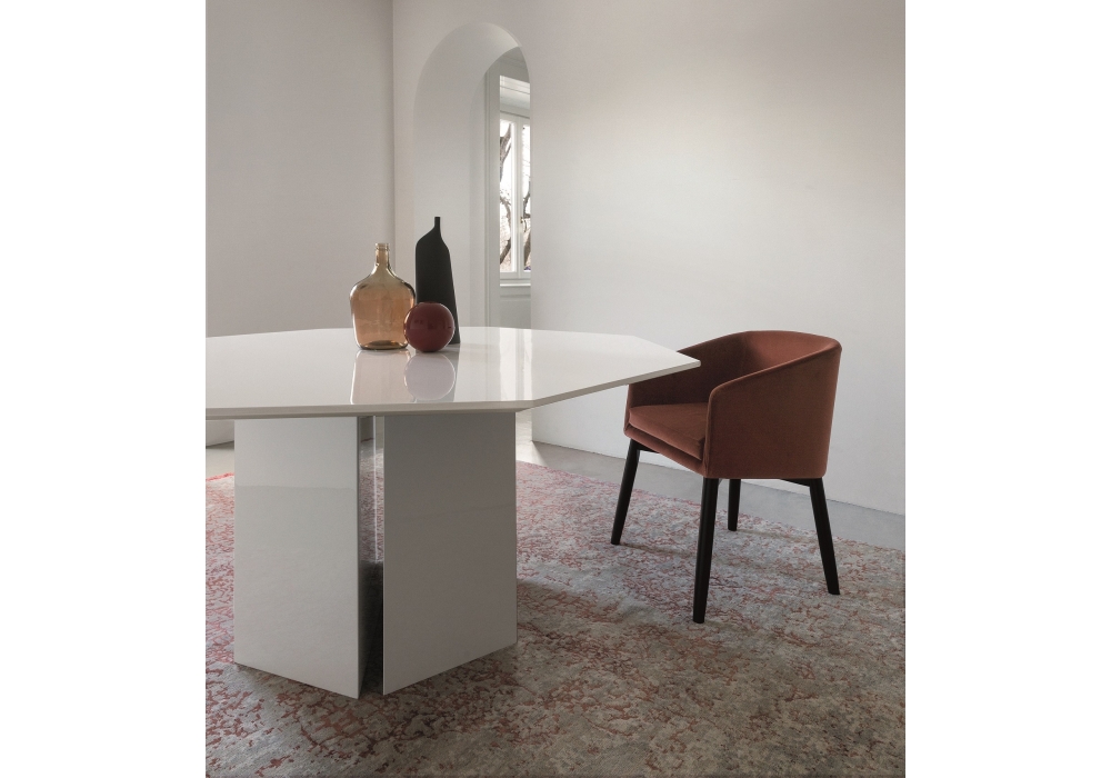 Plinto 2K designed by Andrea Parisio for Meridiani is a dining table that has a base composed by one-piece available in matt or glossy lacquer, marble or wood. Table top is realized in different sizes and shapes and it made of wood, marble or lacquered in matt or glossy finish.
