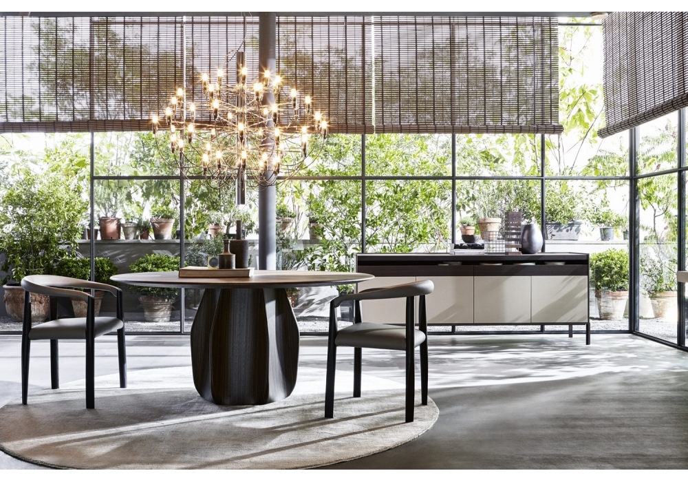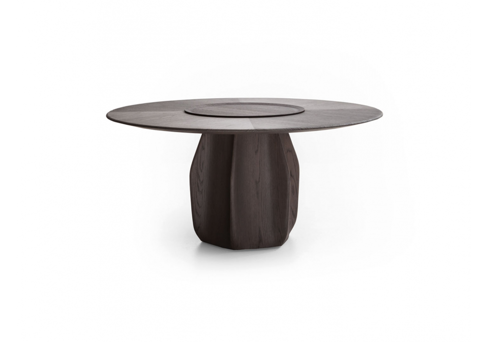 Asterias von Patricia Urquiola für Molteni&C entworfen, ist eine Kollektion von Tischen mit einem zentralen Sockel mit sechs geformten Flächen, die in den gleichen Ausführungen wie die Platte hergestellt werden. Die Tische sind mit oder ohne Drehteller erhältlich. Der Plattenteller hat das gleiche Finish wie der Tisch.