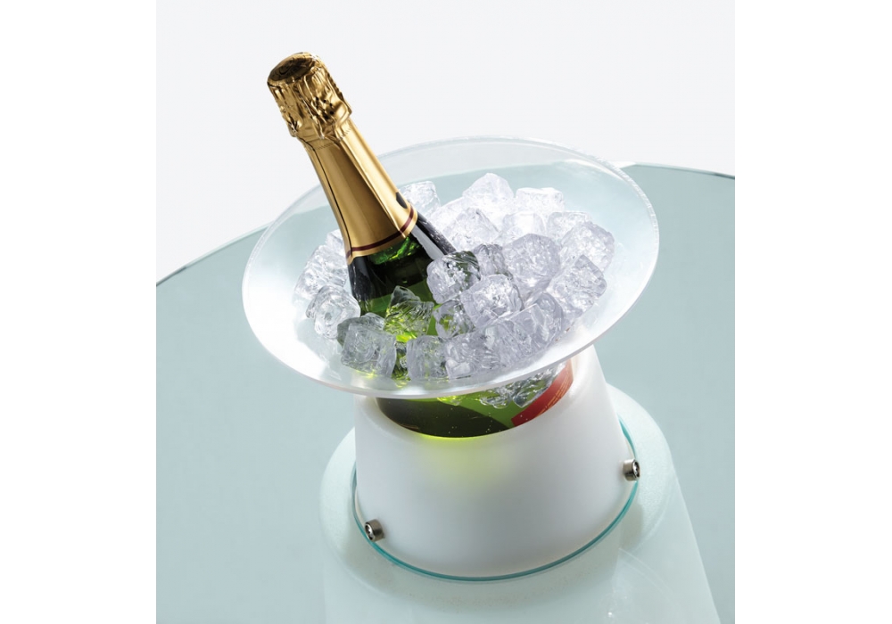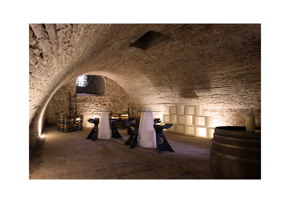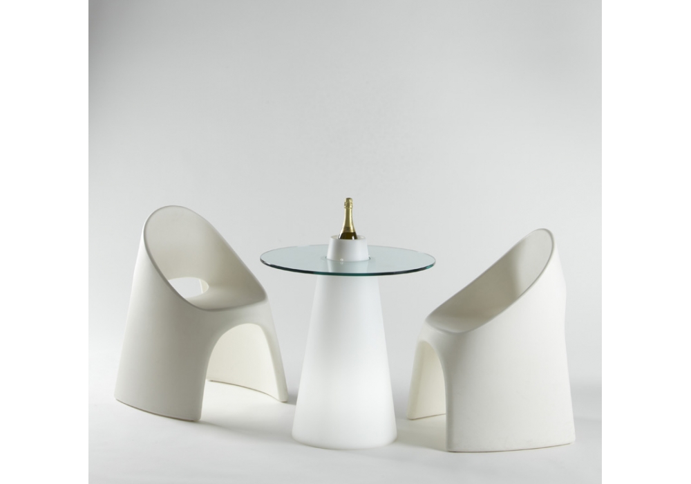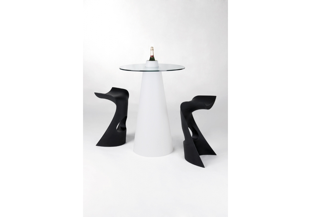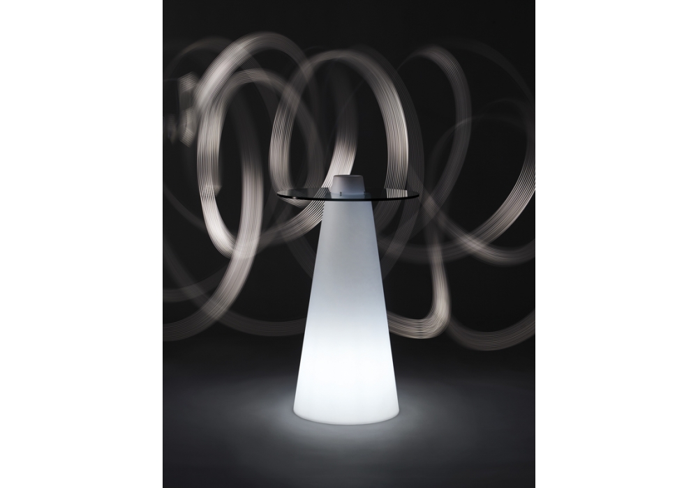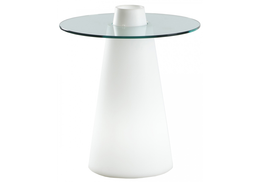 Peak von Aksu/Suardi für Slide entworfen, ist ein Tisch aus Polyethylen mit Glasplatte.