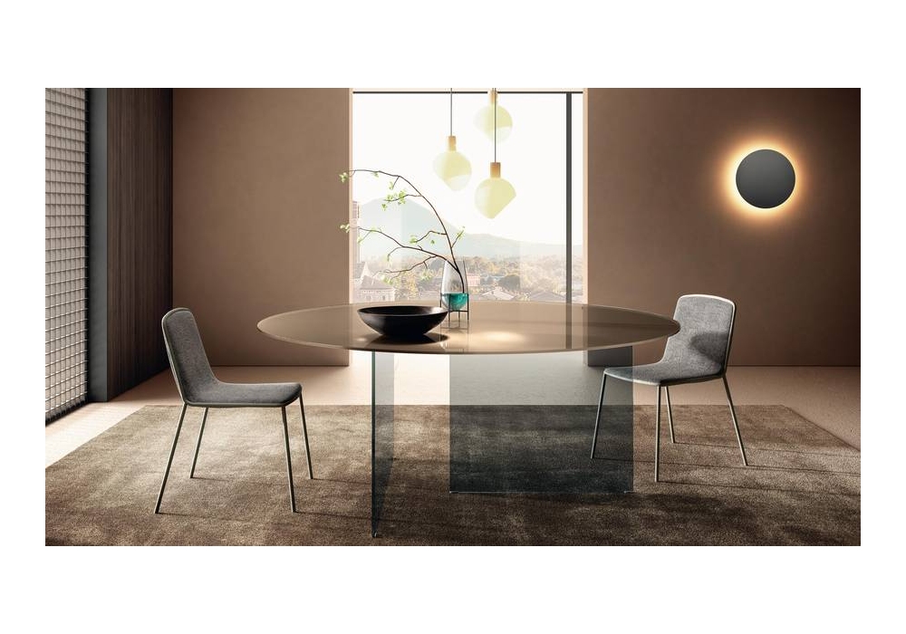Air Slim von Daniele Lago für Lago entworfen, ist ein runder Tisch mit Beinen aus extraklarem oder rauchgrauem Glas und einer matt oder glänzend lackierten Glasplatte. Verfügbar in mehreren Ausführungen und Abmessungen.