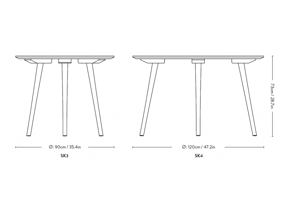 | Durchmesser der Platte | Ø 90 cm; Ø 120 cm. |