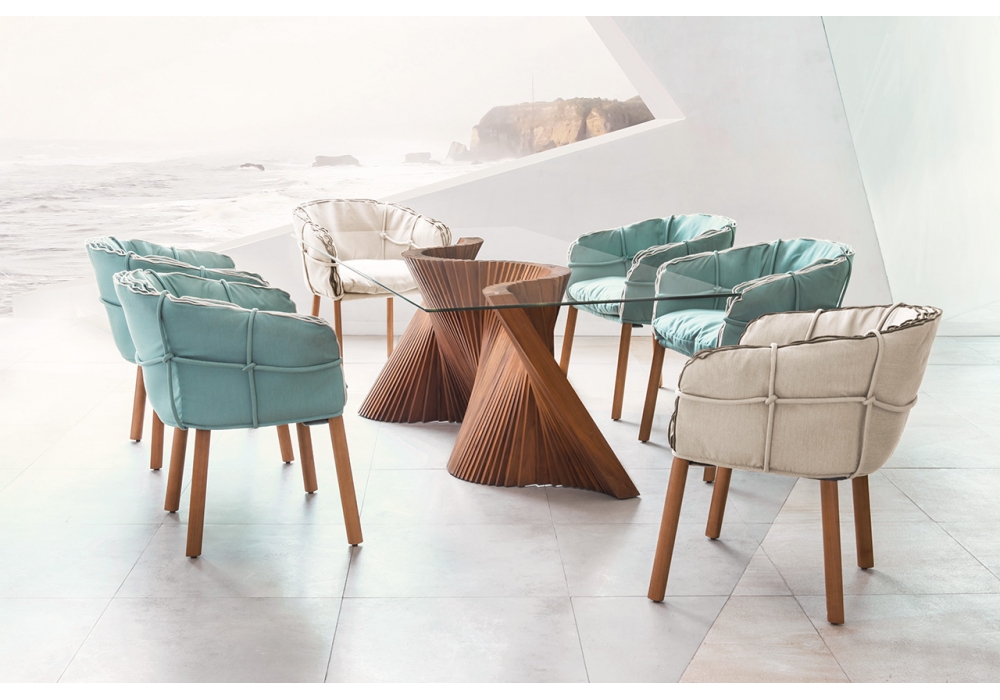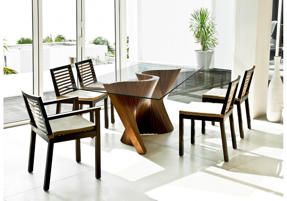 Wave von Designer Kenneth Cobonpue entworfen ist ein Tisch aus Holz mit Glasplatte. Verfügbar in zwei Ausführung und drei Größen.