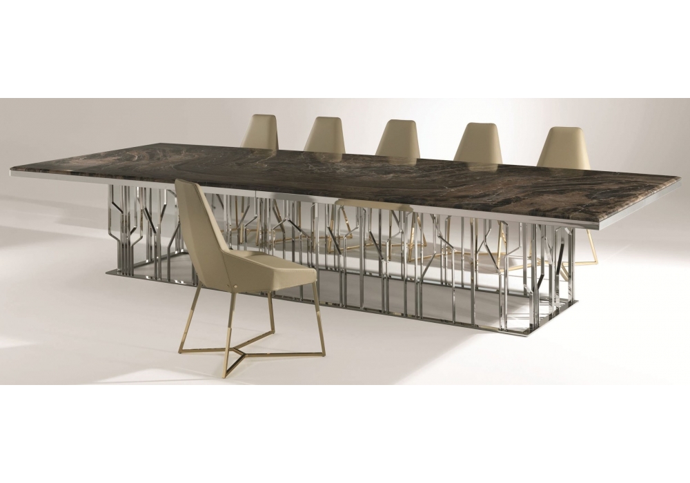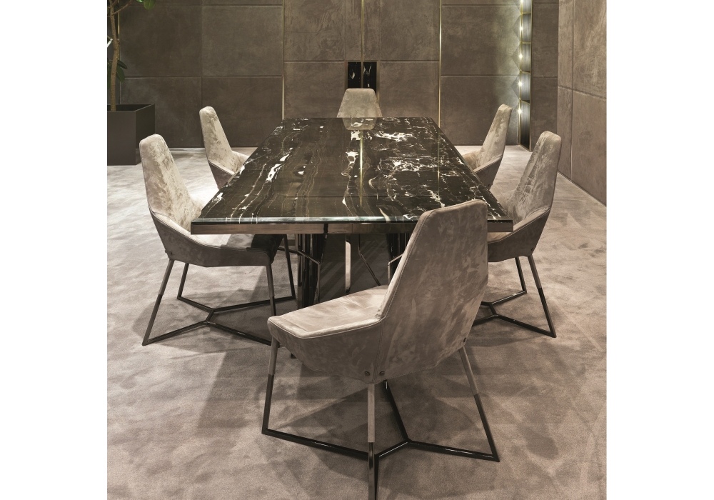 Ginza von Alessandro La Spada für Longhi entworfen, ist ein Tisch mit Struktur aus glänzendem oder mattem Metall und Platte aus Marmor, lackiertem Glas oder Spiegel. Verfügbar in verschiedenen Abmessungen und Ausführungen.