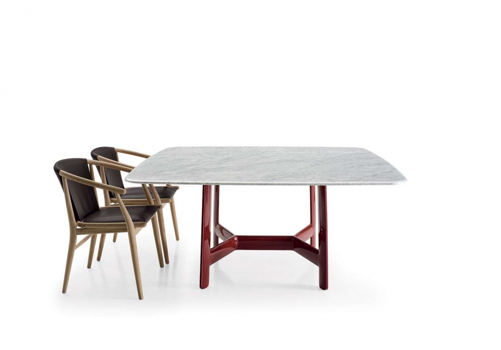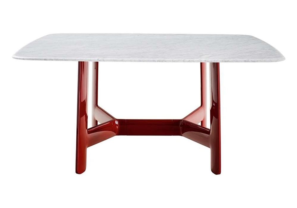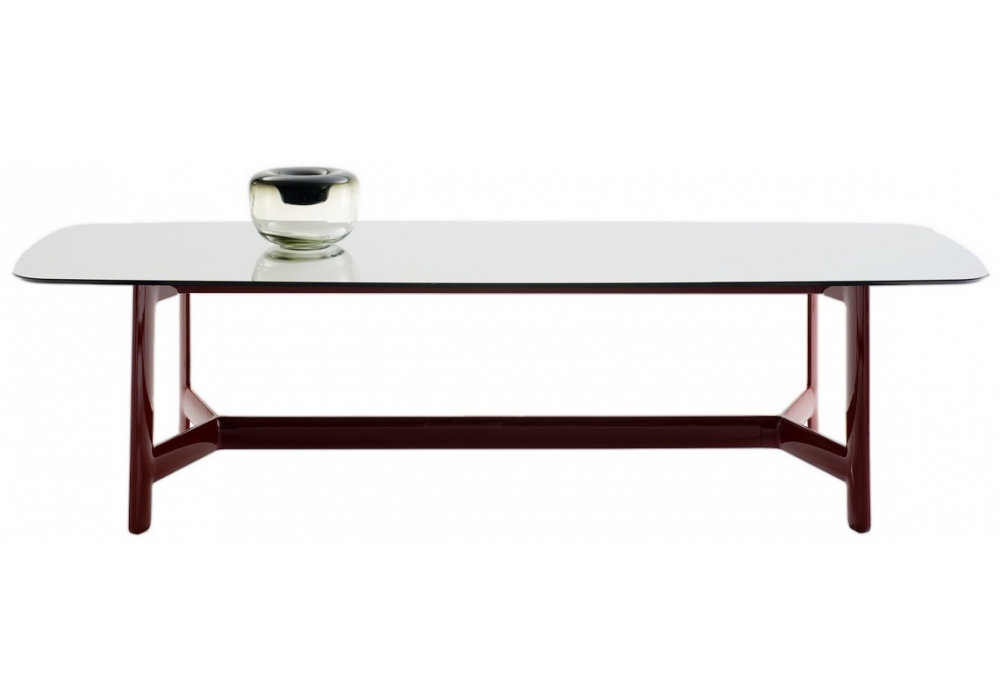 Alex von Antonio Citterio für B&B Italia entworfen ist ein Tisch mit einer Struktur aus hochdichtem, strukturiertem Technopolymer in glänzender Ausführung und einer Tischplatte aus furnierter MDF-Holzfaserplatte, Glas und Spiegel mit Sicherheitsfolie beschichtet und aufgeklebten Edelstahlplatten oder Marmor. Verfügbar in mehreren Größen.