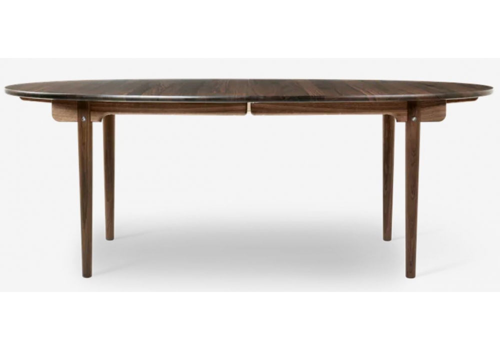 CH338 von Hans J. Wegner für Carl Hansen & Søn entworfen, ist ein Tisch mit einem Gestell aus massivem Walnuss, Buche, Eiche oder Mahagoni in verschiedenen Ausführungen. Der Tisch ist für zwei oder vier Verlängerungen ausgelegt.