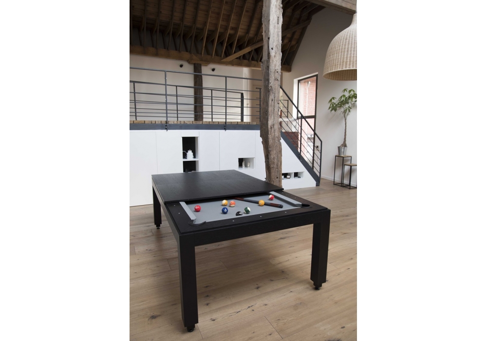 Wood-line, von Fusiontables entworfen, ist einer Billardtisch mit Struktur in Nussbaum oder Eichenholz verfügbar in mehreren Ausführung. Es kann als Esstisch dank 3 Panels in der gleichen Ausführung der Struktur verwendet werden. Original und vielseitig, Wood-line bleibt das diskrete Herzstück Ihres Wohnzimmers und es kann bei Bedarf geändert werden. Die Panels sind enthalten. Spiel-Top verfügbar in mehreren Farben. Das Zubehör für das Spiel der Billard steht zur Verfügung.