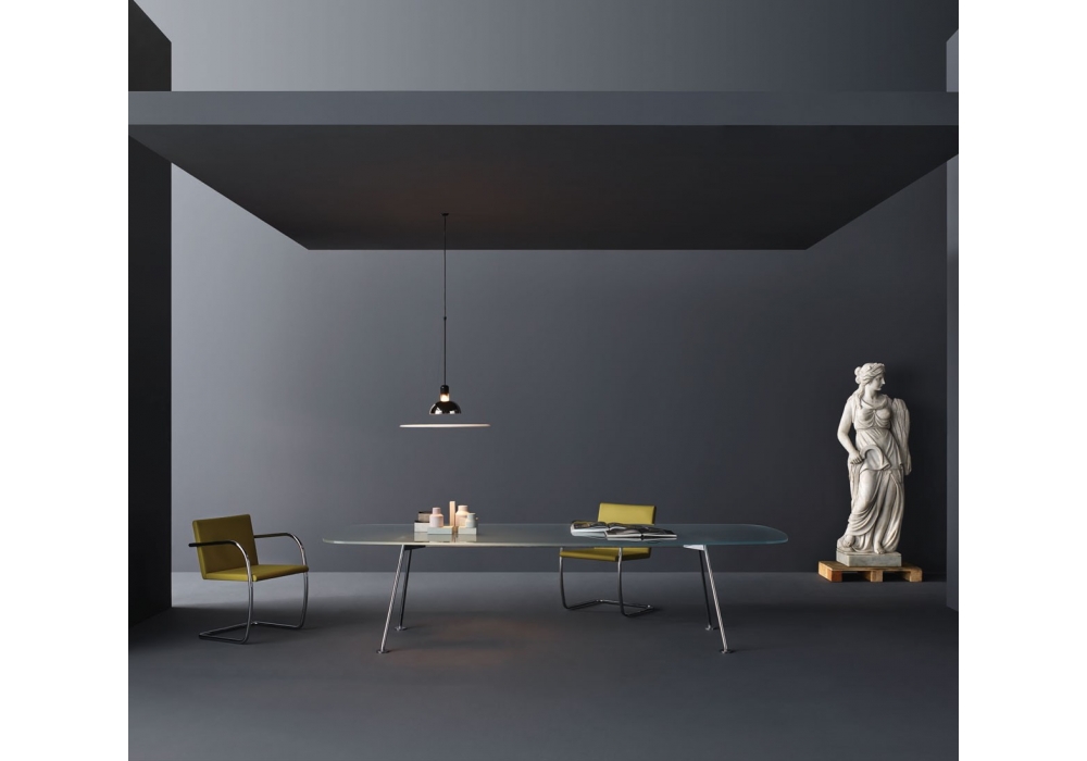 Grasshopper von Piero Lissoni für Knoll entworfen, ist ein Tisch mit Stahlbeinen verfügbar in 3 verschiedenen Ausführungen und Tischplatte aus Marmor, Holz oder Glas. Auch verfügbar in verschiedenen Größen.
