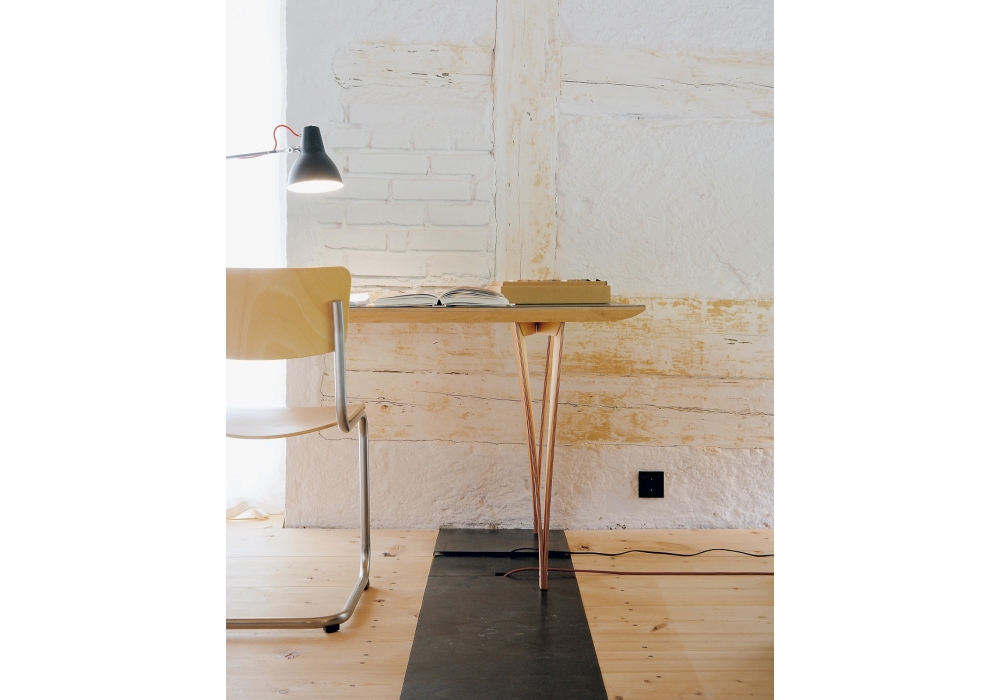 Spanoto von Jakob Gebert für Moormann entworfen, ist ein Tisch verfügbar in verschiedenen Ausführungen und Beinen aus Birkensperrholz, der jederzeit verschoben und herausgenommen werden kann. Auch verfügbar in 4 Größen.
