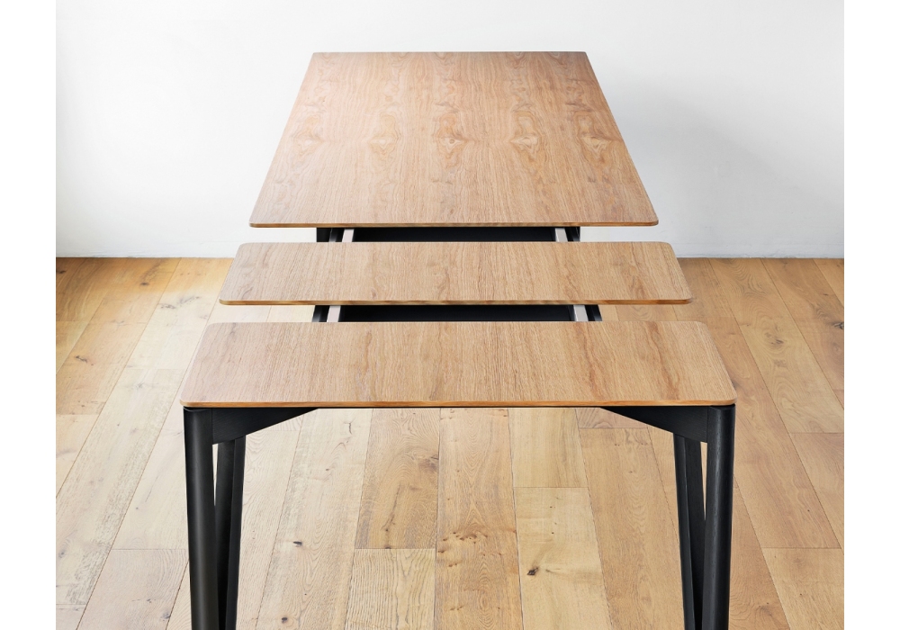 Decapo von Francesco Beghetto für Miniforms entworfen, ist ein ausziehbarer oder feststehender Esstisch. Platte aus Holz, Keramik, Fenix, Glas oder Marmor. Erhältlich in verschiedenen Ausführungen. Beine aus Nussbaum Canaletto oder Eiche.