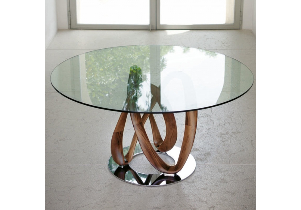 Infinity C, von S. Bigi für Porada entworfen, ist einer Esstisch mit Gestell aus massivem Canaletta Nussbaum oder Esche verfügbar in verschiedenen Ausführungen. Metallplatte und ESG-Glasplatte (Stärke mm. 12). Verfügbar in verschiedenen Abmessungen.