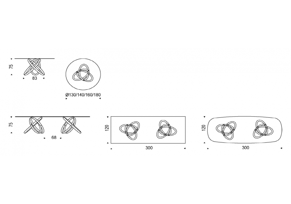 | Abmessungen | ø 130 cm x H 75 cm; ø 140 cm x H 75 cm; ø 160 cm x H 75 cm; ø 180 cm x H 75 cm; 300 x 120 x H 75 cm. |