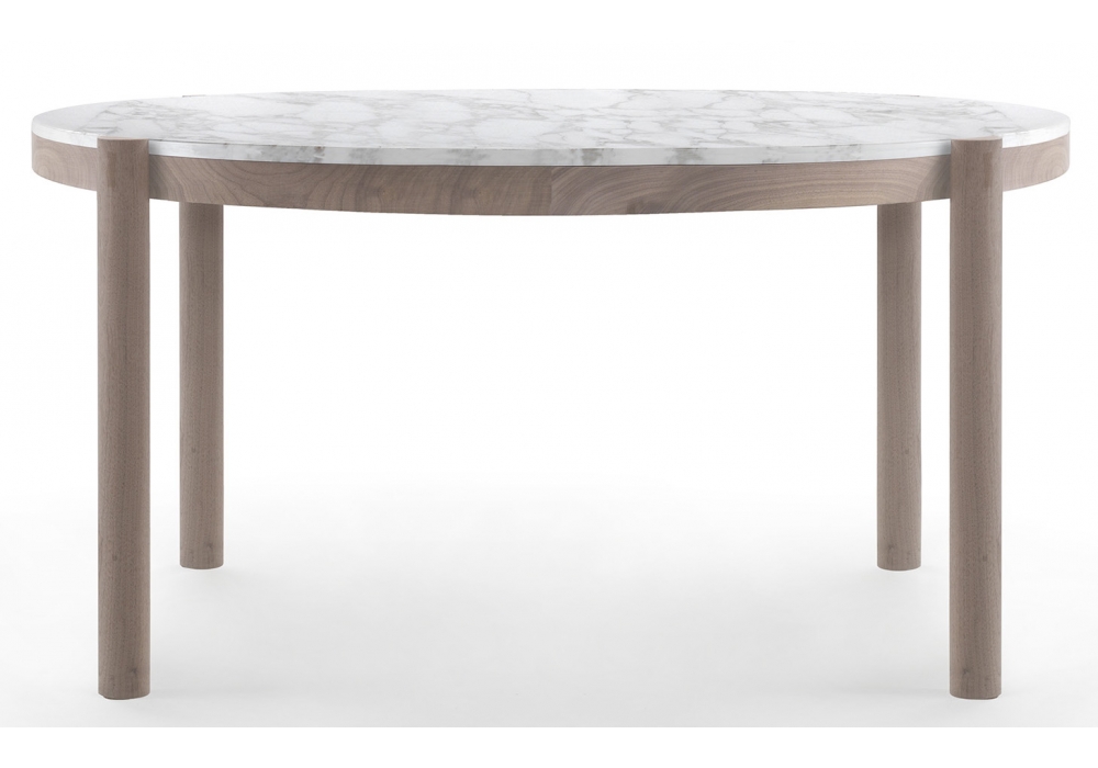 Gustav, von Carlo Colombo für Flexform entworfen, ist einer Tisch mit Struktur aus verschiedenen Holzoberflächen und Marmorplatte. Verfügbar in verschiedenen Abmessungen.