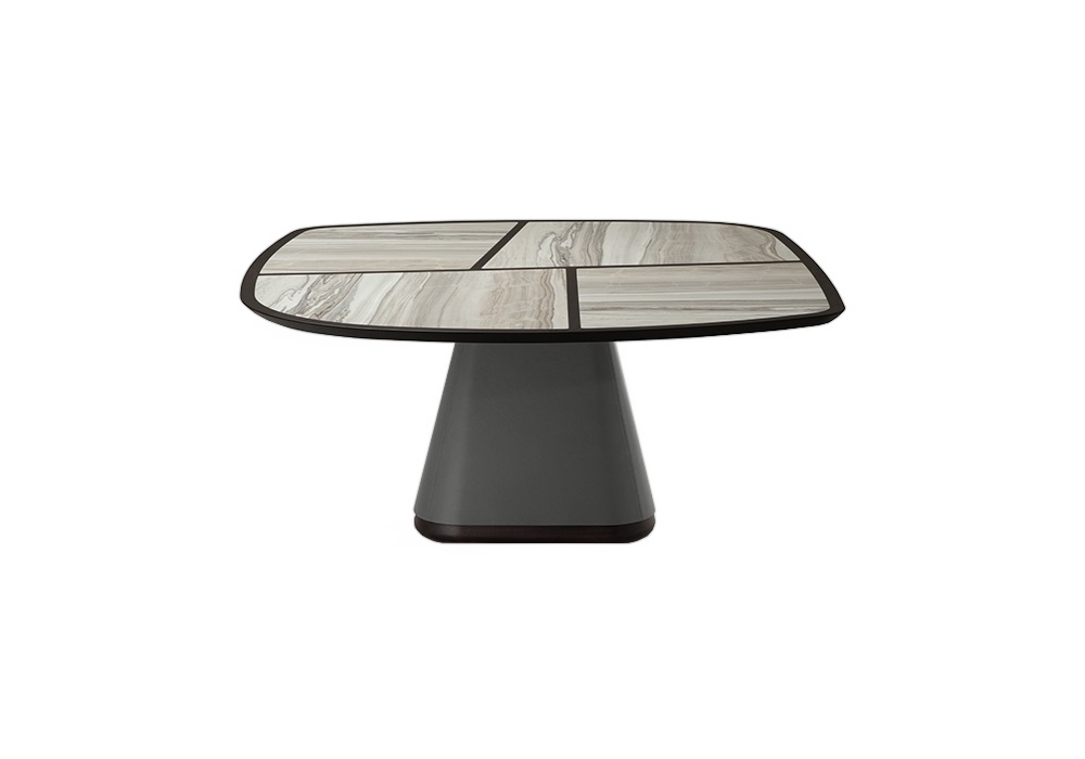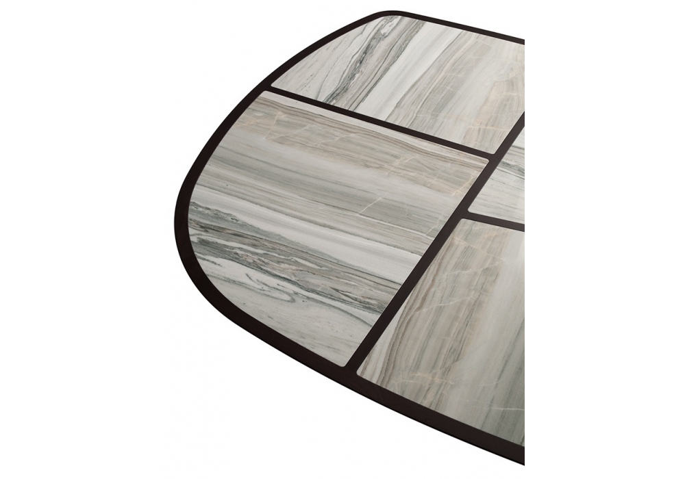 Disegual von Umberto Asnago für Giorgetti entworfen, ist ein Tisch mit Holzstruktur aus massivem Eschenholz verfügbar in 5 Ausführungen und Tischplatte-Einsätze aus Holz oder Marmor. Die Basis ist aus Leder bezogen. Auch verfügbar in 2 Größen.