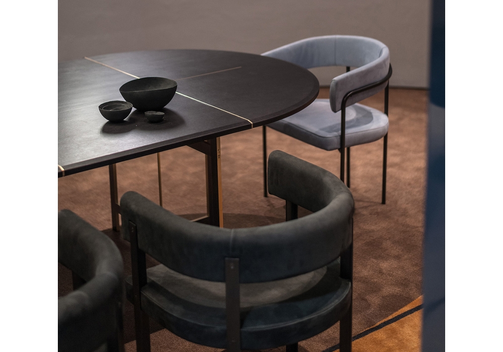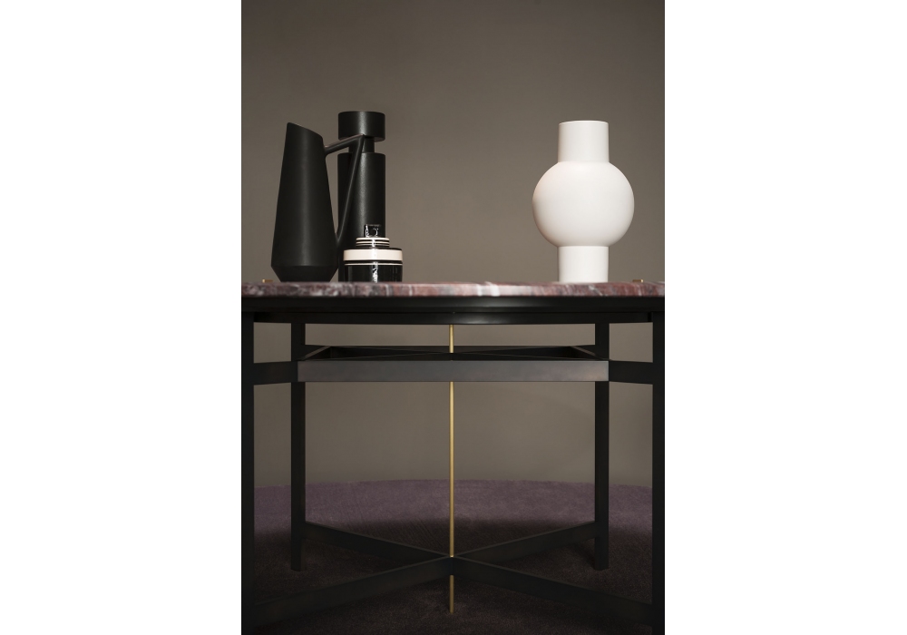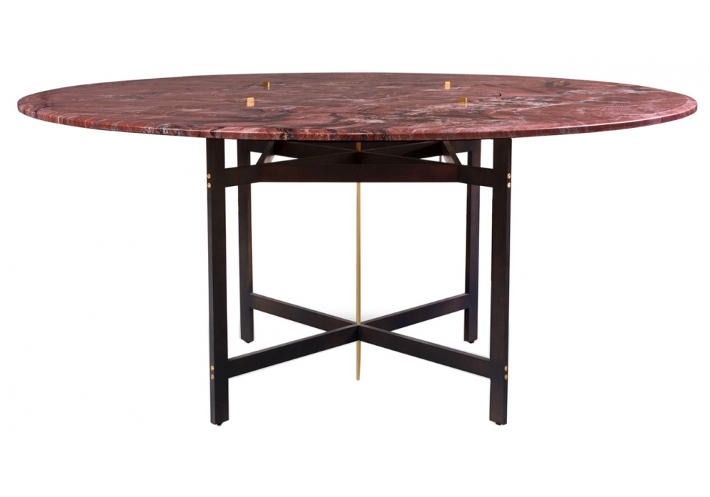 Placé von Federico Peri für Baxter entworfen, ist ein Tisch mit Platte aus Stein, verfügbar in verschiedenen Ausführungen oder mit Leder bezogen. Metallbasis lackiert mit brüniertem Effekt und satinierten Messingdetails. Verfügbar in verschiedenen Abmessungen. Die runden Tische mit Steinplatte werden mit einer Lazy Susan vervollständigt.