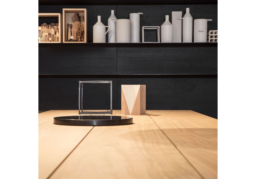 Ryoba, von Piero Lissoni für Porro entworfen, ist ein Tisch mit Beinen aus Aluminium, die mit Esche bedeckt sind, und einer Platte aus massivem Eschenholz.