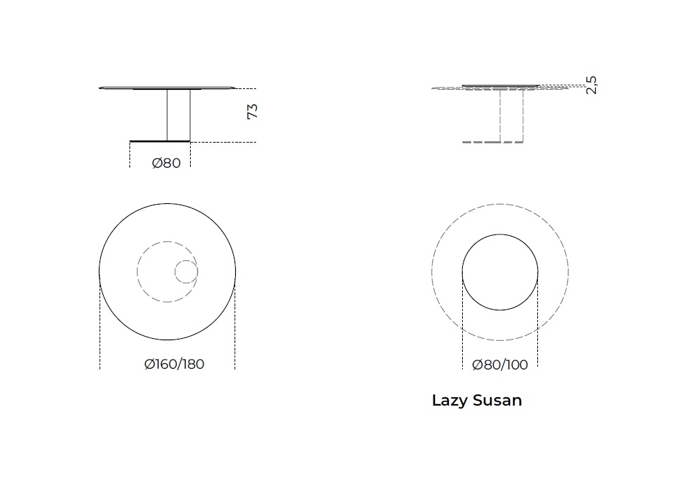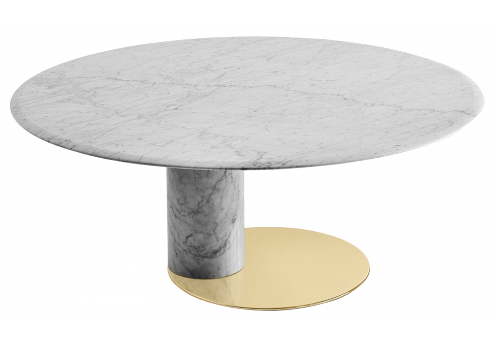 Oto Big von Oscar & Gabriele Buratti für Gallotti&Radice entworfen, ist ein Tisch mit Platte und Gestell aus Marmor Bianco Carrara Natur glänzend oder Nero Marquinia geschliffen matt. Metallplatte Edelstahl (Inox) vermessingt poliert. Auf Wunsch auch drehbare Platte aus Marmor, die nicht auf der Hauptplatte befestigt, sondern aufgelegt ist.