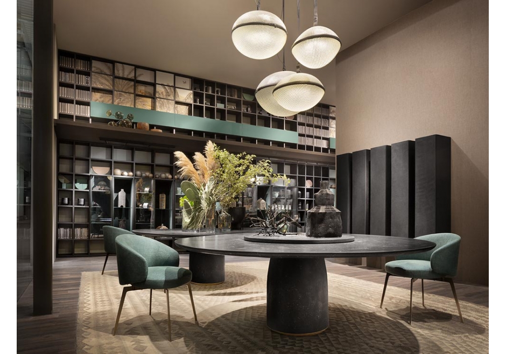 Bulè von Chiara Andreatti für Lema entworfen, ist ein Tisch mit zentraler Säule und rekonstruierter Marmorplatte auf Metallbasis. Verfügbar in mehreren Ausführungen und Abmessungen.