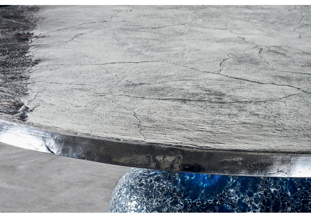 Moon, von Paola Navone für Gervasoni entworfen, ist einer Runder Tisch mit zentrale Basis aus blauer Keramik und Tischplatte aus Aluminium oder Marmor. Verfügbar in mehreren Größen.