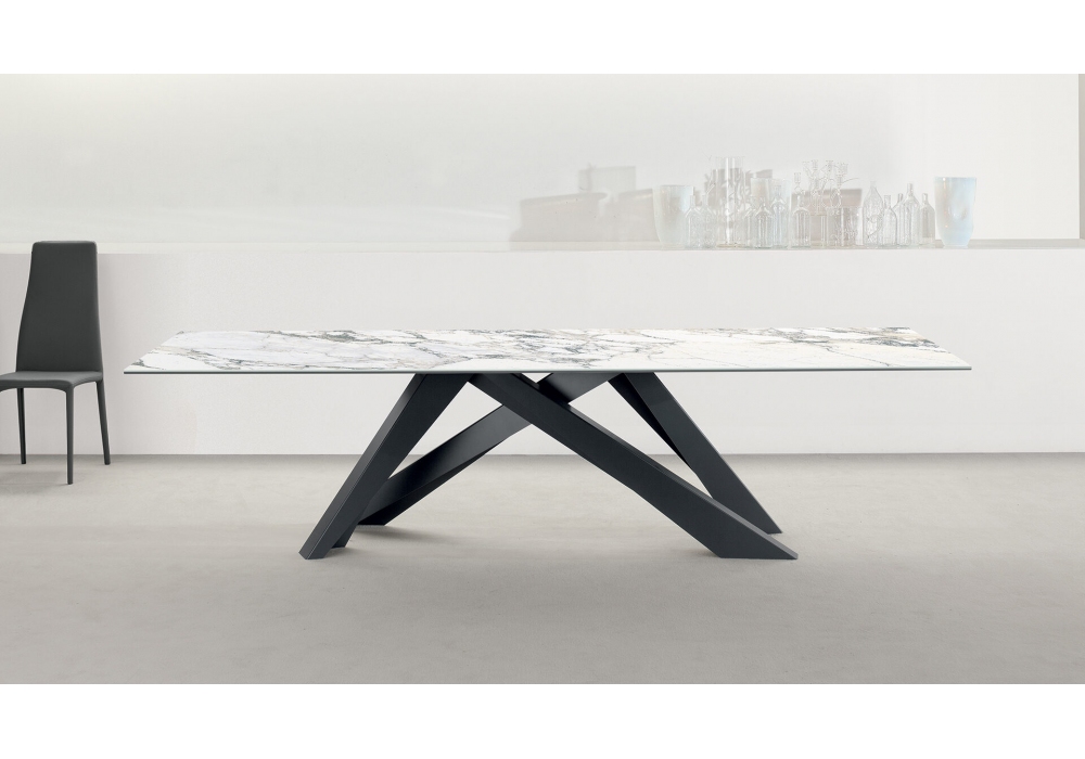 Big Tablevon Alain Gilles für Bonaldo entworfen, ist ein Tisch mit großer Persönlichkeit. Metallstruktur und Beine in verschiedenen Ausführungen erhältlich. Tischplatte aus Holz oder Keramik. Auch in verschiedenen Abmessungen erhältlich.