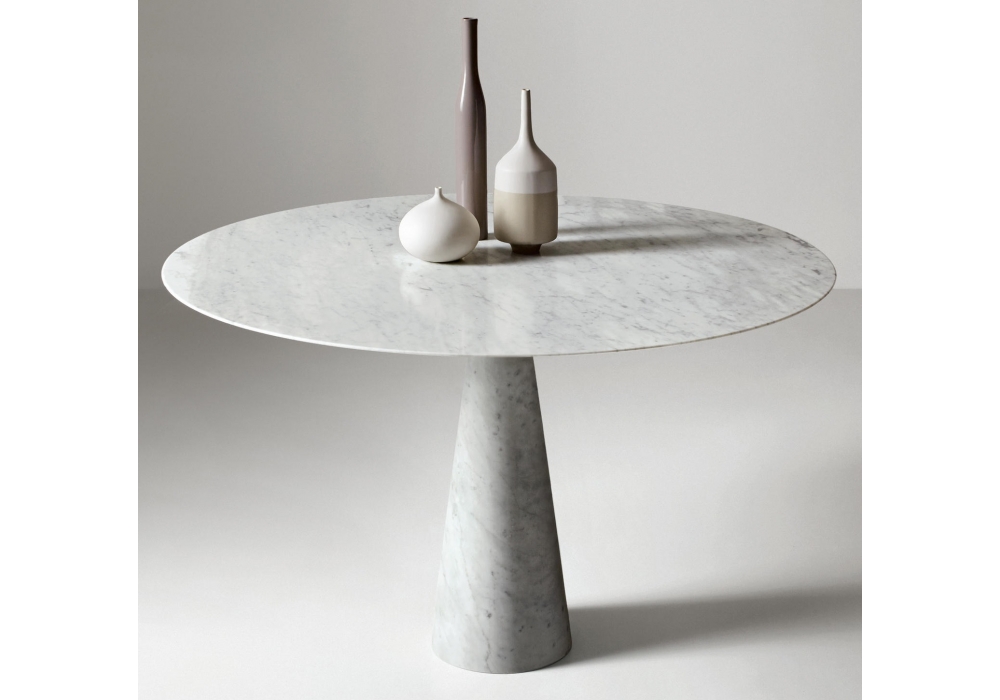 Leaf von Luca Martorano für Neutra entworfen, ist ein runder Esstisch mit Basis aus Stein in verschiedenen Ausführungen und Tischplatte aus Stein oder Glas. Auch verfügbar in 3 Abmessungen.
