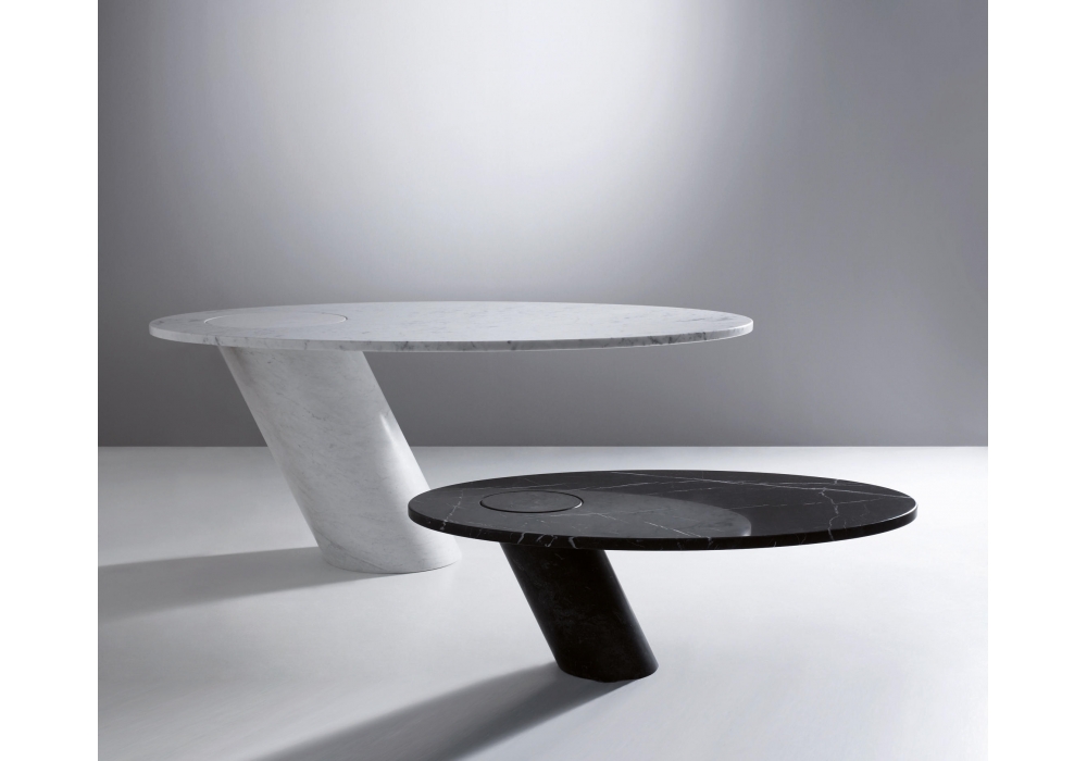 Eccentrico, von Angelo Mangiarotti für Agapecasa entworfen, ist eine Elliptisch aus Marmor mit einen “exzentrischer” schrägen Fuß. Der Marmor in den folgenden Ausführungen erhältlich: weiß Carrara, schwarz Marquinia, grau Carnico, grün Alpi und Emperador Dark.