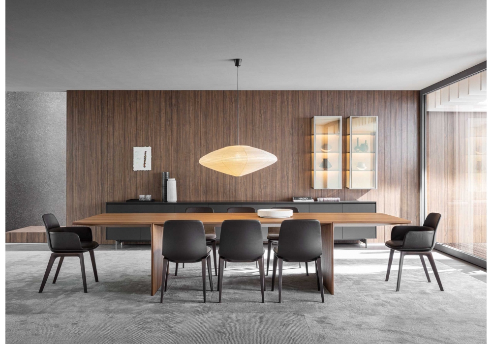 Ava Table von Foster + Partners für Molteni&C entworfen, ist ein rechteckiger Tisch mit Brückenstruktur. Hergestellt mit Holzplatte und Struktur. Verfügbar in mehreren Ausführungen und Abmessungen.