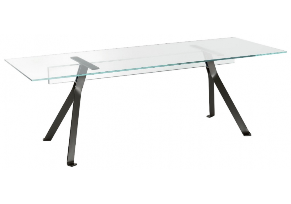 Mari Cristal von Philippe Starck für Glas Italia entworfen, ist einer Tisch mit Glasplatte verfügbar in verschiedenen Ausführungen. Die Basis besteht aus zwei Böcken, die aus spiegelpoliertem Edelstahl oder aus Satinbronze lackierter Stahl. Auch verfügbar in mehreren Abmessungen.