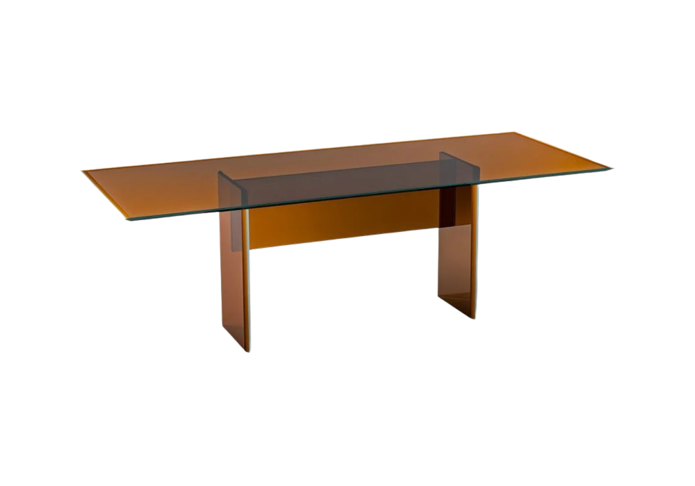 Bisel von Patricia Urquiola für Glas Italia entworfen, ist ein Tisch aus mehrschichtigem und mehrfarbigem Glas, das durch Laminieren von fünf Platten aus 5 mm extralight Glas mit jeweils einer andersfarbigen Folie hergestellt wird.