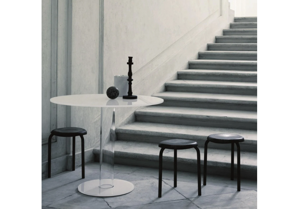 Hub Bistrot von Piero Lissoni für Glas Italia entworfen, ist eine bistrot Tisch, in gehärtetem Glas durch eine Basis aus transparentem Borsilikatglas und einen Fuß in Glas unterstützt. Das Oberteil und der Fuß sind in glänzend lackiertem oder opak lackiertem Glas erhältlich.