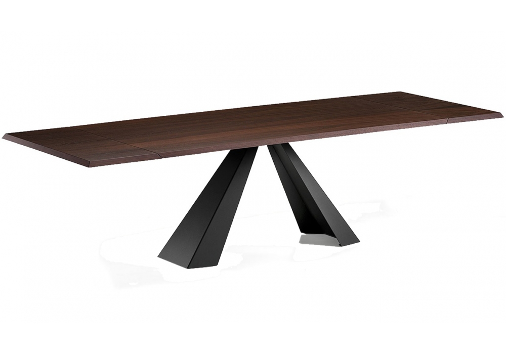 Eliot Wood Drive, von Giorgio Cattelan für Cattelan Italia, entworfene ist ein ausziehbarer Tisch mit Stahlfuß und Platte aus Canaletto-Walnuss oder gebrannter Eiche. Verfügbar in 5 Größen.