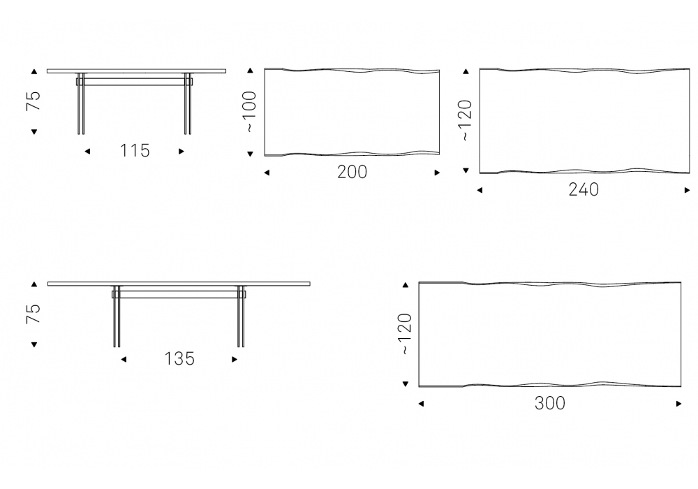 Ikon, von Philip Jackson für Cattelan Italia entworfen, ist ein Tisch mit transparentem Sockel aus gehärtetem Glas, Metall- oder Holzbalken und Holzplatte mit unregelmäßigen Kanten aus Massivholz. Verfügbar in drei Größen.